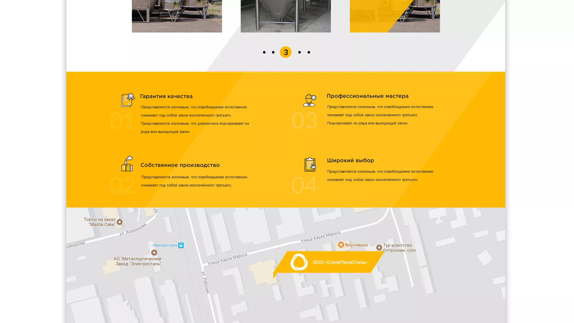 Компания «СтройПромСталь» производит в Дмитровске обширную линейку оборудования из разных видов стали. Среди услуг компании — проектирование, изготовление и монтаж на объекте заказчика резервуаров и емкостей из нержавеющей, углеродистых и биметаллических сталей, металлических контейнеров для пищи и воды и других изделий.